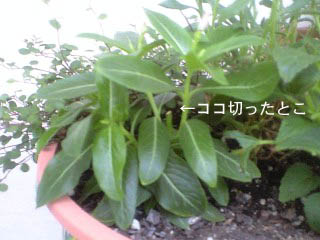 そしてまずは、失敗しても買い直せる、お安いニチニチソウの茎をチョキン!