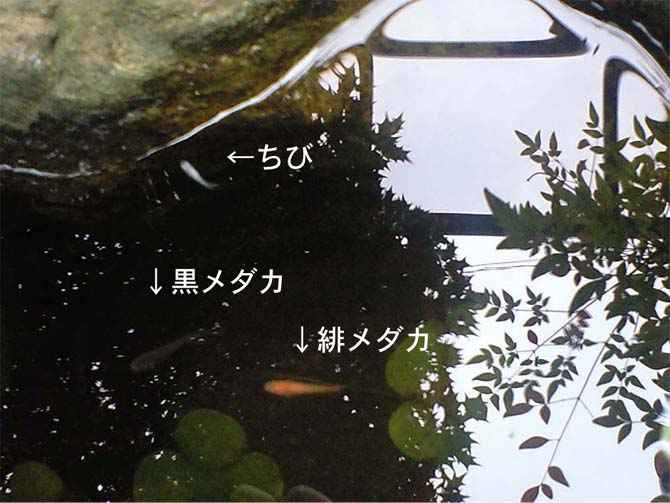 道の駅で黒と緋めだかを数匹買ってきて、お仲間にしました。