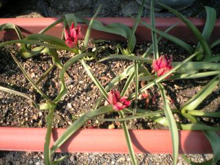 | こちらは原種チューリップ 母がいうにはこのチューリップは スケベじゃないようです。 鼻(花)の下が短かいからだって! |